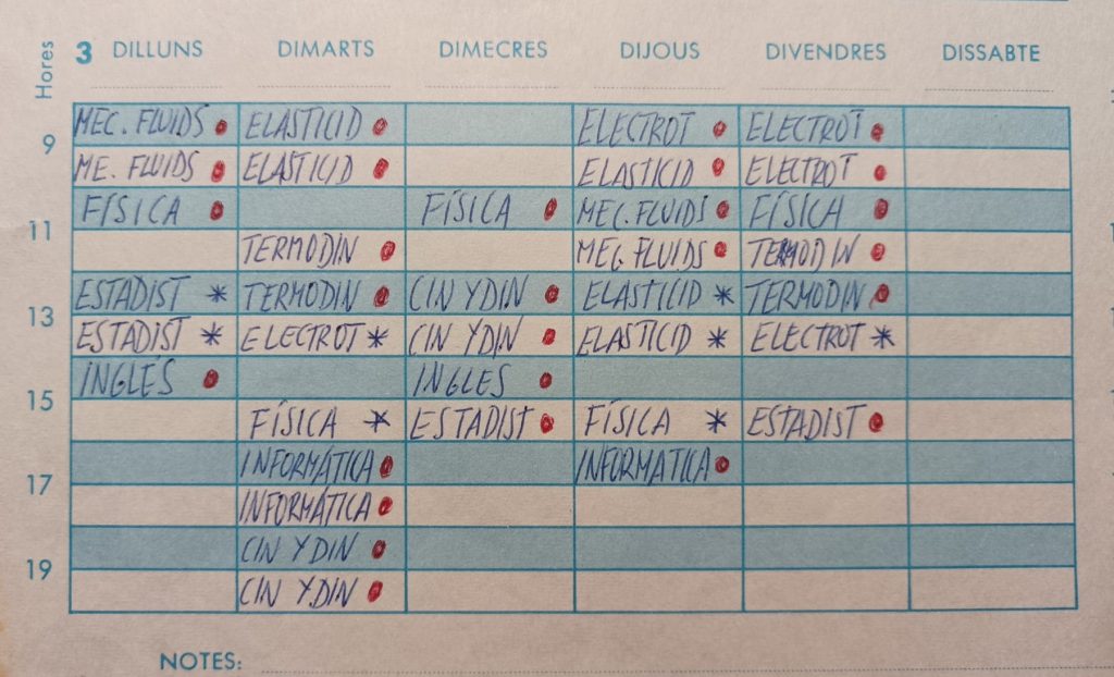 Este era el HORARIO de la asignatura «Elasticidad y Resistencia de Materiales»