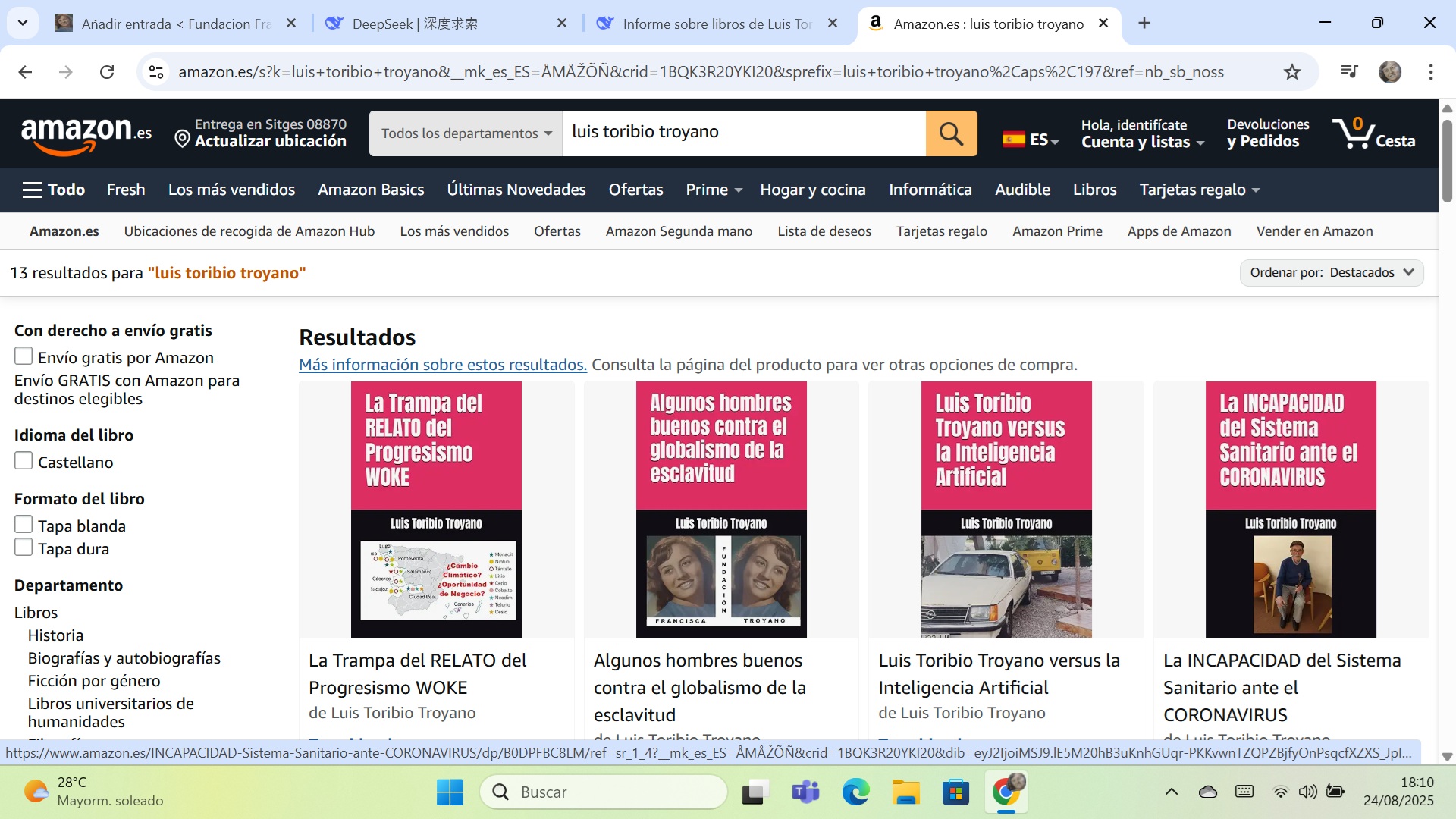 - Disponibilidad: Sus libros están disponibles en plataformas como Amazon (ej. «DeepSeek resuelve el conflicto…» ) y a través de la Fundación Francisca Troyano .